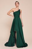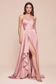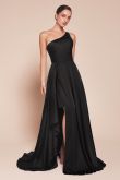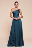 This elegant A-line long dress features a chic one-shoulder design and a flowing asymmetrical skirt crafted from soft satin. The fitted bodice beautifully complements the flowy skirt, creating a graceful silhouette. Ideal for bridesmaids, wedding guests, or formal events, this dress exudes timeless sophistication.