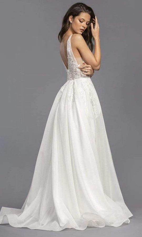 Be the delight of everyone's eyes in Aspeed Design L2148. Envisions a sleeveless, deep V neckline with a fitted bodice and a V-back. The gown is designed with beautiful embroidery and continues to the A-line skirt. The skirt has pockets and completes the look with a sweep train finish. This Aspeed Design dress will let you celebrate that divine feminine beauty!