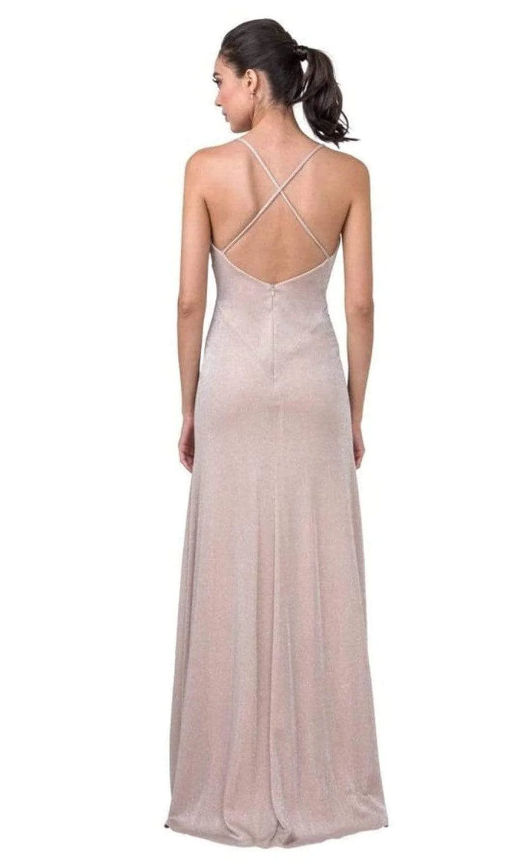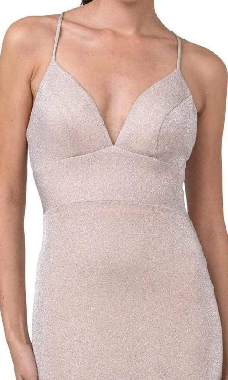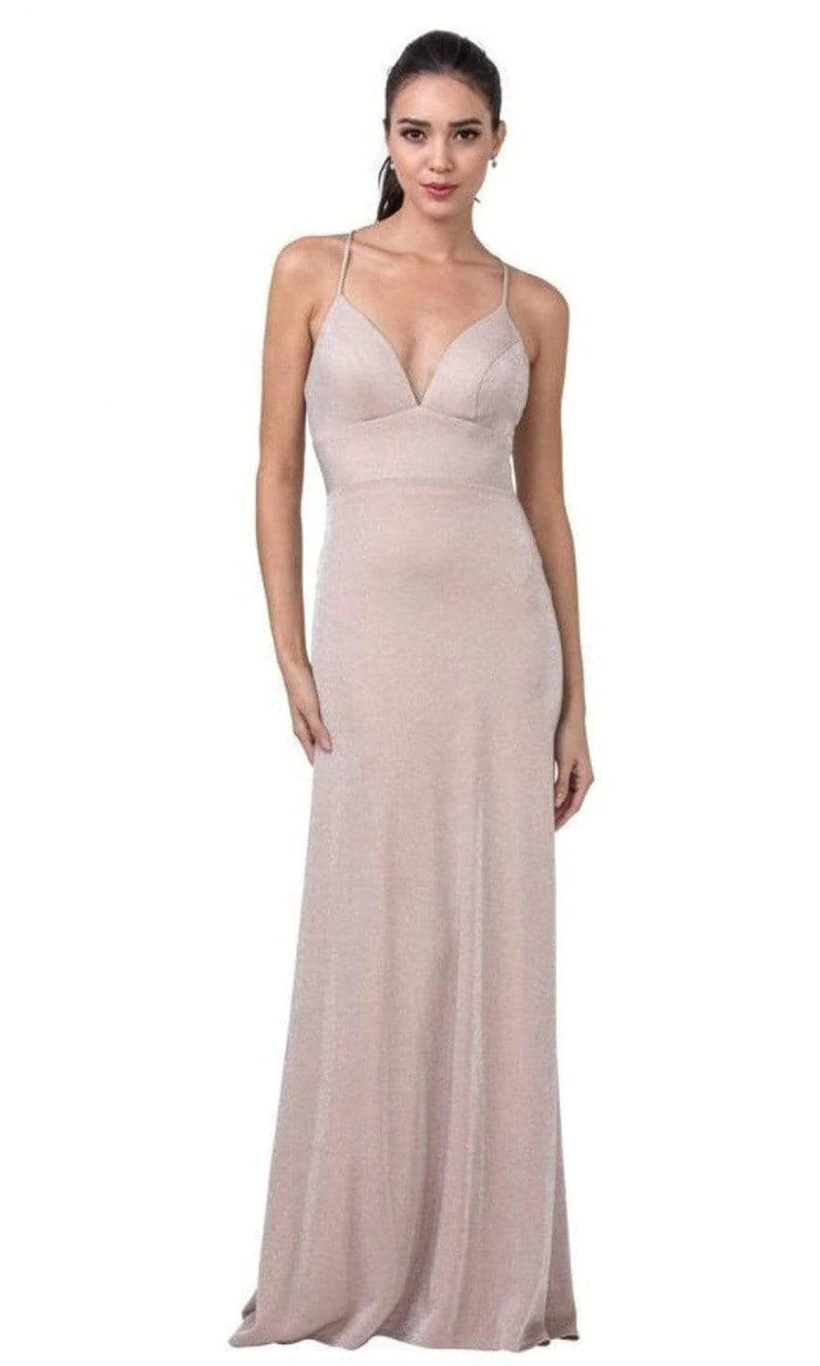 Glitter for the special occasion in this Aspeed Design D413. An outstanding long dress that parades a v-neck neckline a spaghetti straps. It is in sheath silhouette. The dress will make you stand out from the crown with its shining effect. It is a floor length dress that sweeps to the floor elegantly. The back features a crisscross design with an open back for an alluring look. Feel like a star in this magical long dress by Aspeed Design.