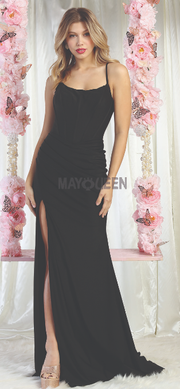 The dress comes with Corset and slit. Slightly Stretchable and Floor-Length.